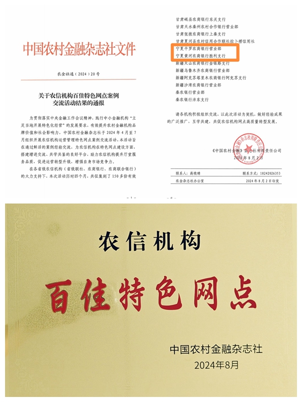 近日,由中国农村金融杂志社主办的全国农信机构运营管理特色网点案例评选结果揭晓,黄河银行胜利支行、平罗农商行营业部通过层层评选,最终从全国150多个申报参选的优秀网点中脱颖而出,斩获殊荣。
